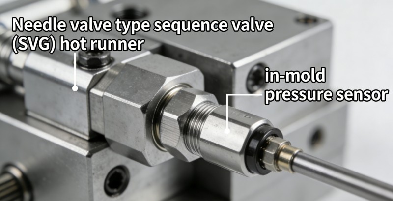 Solution: Integrate “sequential valve gate (SVG) hot runners” with “in-mold pressure sensors.” Programmatically control each valve gate's opening sequence and stroke to actively guide melt flow paths. Combined with real-time cavity pressure feedback to adjust injection parameters, achieving true Scientific Molding.